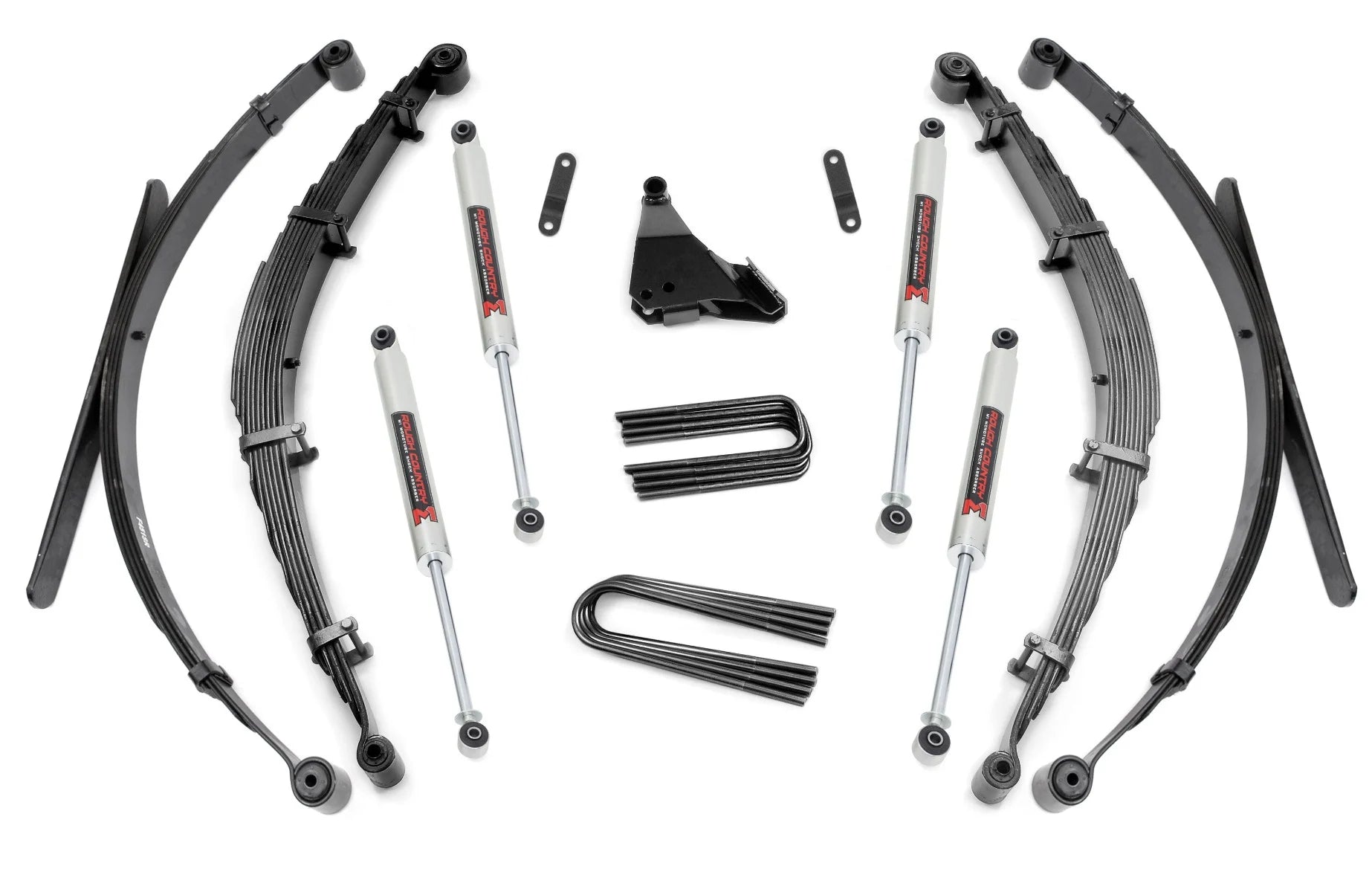 This kit features a set of front and rear lifted leaf springs allowing you gain additional ride height without sacrificing ride quality or performance. A set of sway bar drop brackets and track bar bracket are provided to keep everything at optimum angles for a factory-like ride, even after lifting.